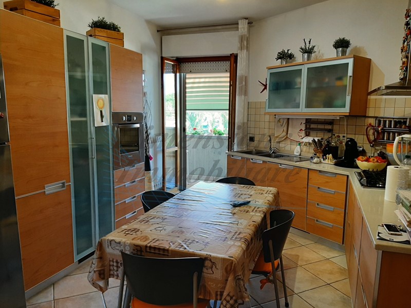 Appartamento al piano 1° composto da comodo ingresso di affaccio sulla cucina abitabile con nicchia dispensa ed uscita sul balcone angolare che comunica con il soggiorno ampio e luminoso, corridoio con armadio a muro grande (uso ripostiglio) che accompagna alla camera matrimoniale ed alla 2° camera, bagno completo con cabina doccia e finestra.