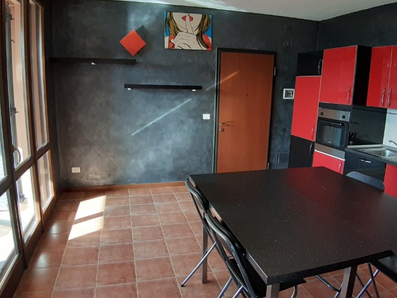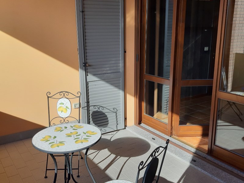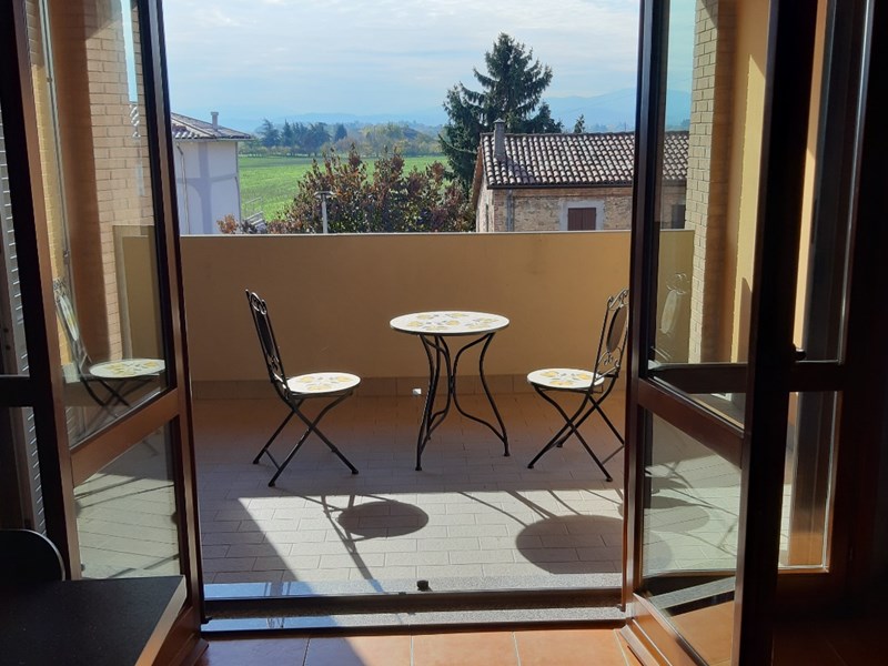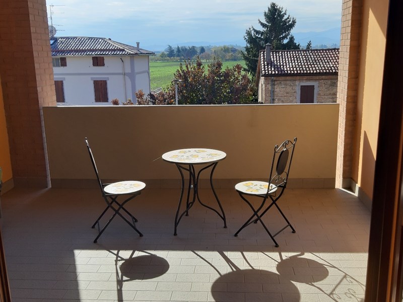 Soggiorno con cucina attrezzata (forno, frigorifero, freezer, lavastoviglie, ripiani e scompartimenti). Spaziosa loggia esposta a sud con vista appennino.