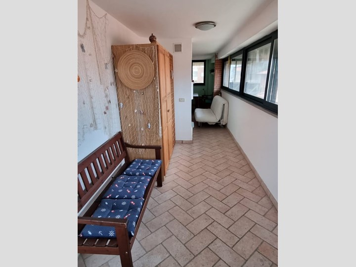 Grazioso appartamento a due passi dal mare e dal porto turistico in piccola palazzina di due piani con garage ed ascensore. L'appartamento sito al secondo ed ultimo piano si compone di ingresso , cucina , camera matrimoniale e bagno , scala interna che porta ad una grande terrazza con vista mare ,cameretta e angolo cottura . Il riscaldamento e l'aria condizionata sono fornite da tre pompe Daikin installate nel 2020 .