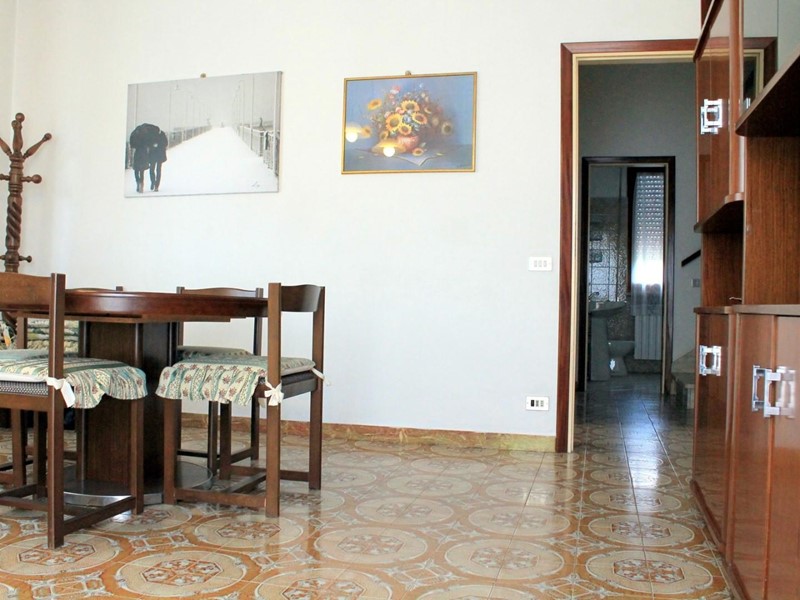 L'ingresso alla prima abitazione avviene nel cucinotto, adiacente a questo ambiente troviamo il soggiorno con zona pranzo e angolo TV. Attraverso una porta finestra è possibile uscire sulla terrazza dalla casa. Dal disimpegno si accede alla prima camera matrimoniale posta a piano terra e al primo bagno con vasca.
