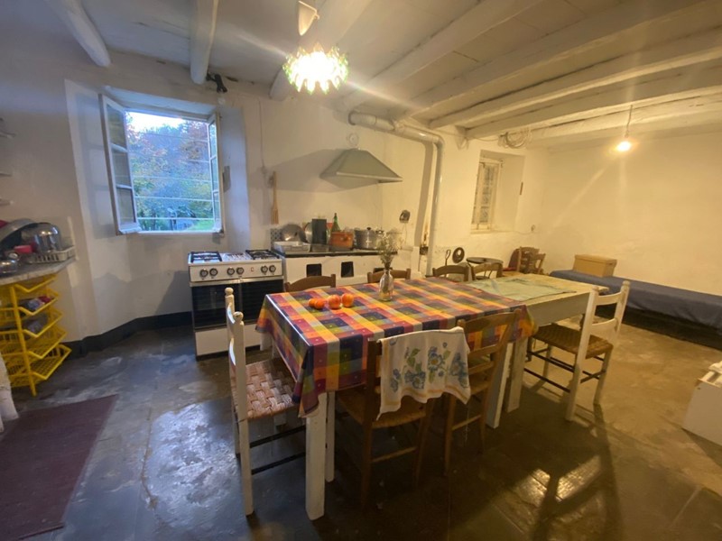 Questa casa in pietra conserva tutto il fascino della casa nel bosco. Pur trovandosi a 10 minuti dal centro paese gode di un'indipendenza totale e nessuna soggezione da parte di case vicine. Al piano terra una cucina abitabile con zona pranzo e zona soggiorno, stufa a legna e antico forno rivestito in ceramica funzionante, un locale cantina ampio e con accesso indipendente al giardino; al piano primo 4 camere e il bagno; il sottotetto è un vano unico ancora da personalizzare. Un secondo fabbricato di circa 70 mq ora magazzino completa la proprietà oltre a circa 2000mq di terreno circostante il fabbricato e altro appezzamento leggermente distaccato di prato e bosco.