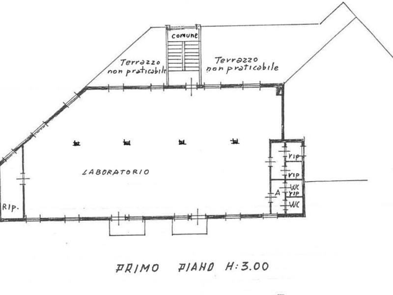 In posizione strategica e di forte passaggio proponiamo in affitto un laboratorio, di mq 204 ca., posto al 1P senza ascensore. Esso si compone di ingresso su ampio e unico vano, ripostiglio di mq 13 ca. ,