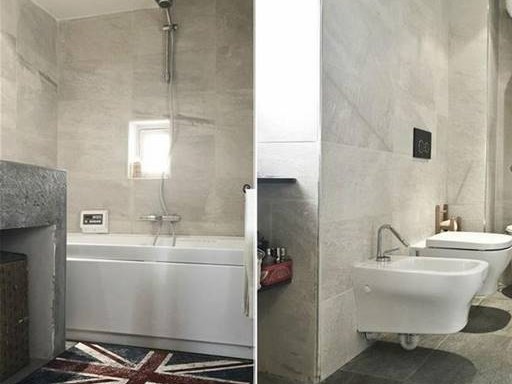 - Bagno con finestra e finestrino, sanitari sospesi, vasca idromassaggio.
