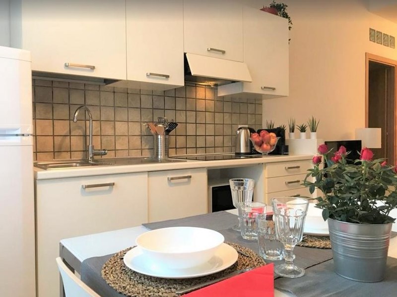 In affitto apartmento in Via del Porto di 90 mq disposto su due livelli recentemente ristrutturato, ideale per una famiglia. L'ingresso dell'appartamento è al piano terra. Ampio e luminoso ingresso con angolo cottura completamente attrezzato con piano a induzione con 4 fuochi, frigorifero con freezer, forno a microonde, lavastoviglie, macchina per caffè espresso, bollitore e tostapane. La zona giorno dispone di un divano e di una TV a schermo piatto da 32’ con TV SAT per la ricezione di canali internazionali. Completa il piano un salottino guardaroba con una scrivania.