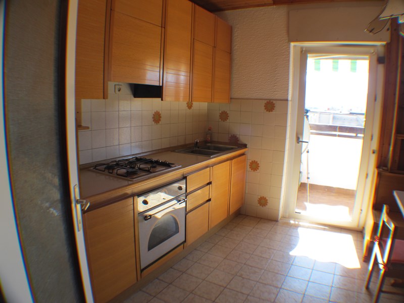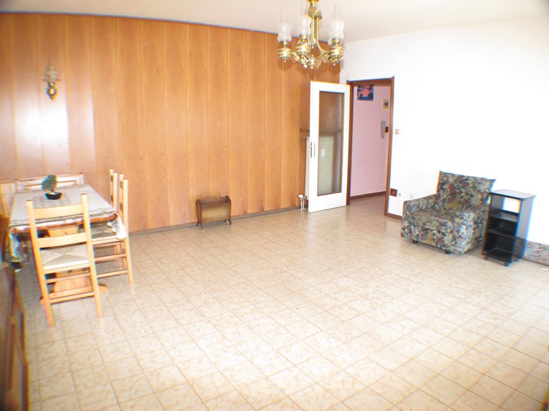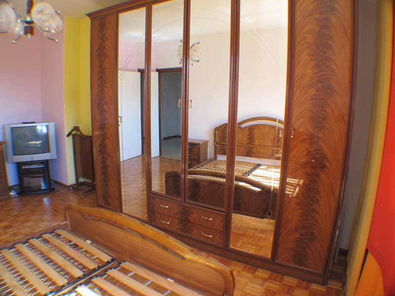 Appartamento di 120 mq., 8° piano di 10 piani totali, esposizione sud-est, composto da ampio soggiorno, cucina abitabile, 1 stanza matrimoniale, 1 stanza doppia, bagno finestrato, ripostiglio, balcone, cantina e garage.