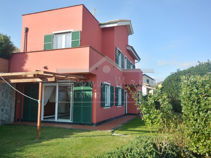 Vendita Celle Ligure. Villa su tre livelli con giardino e piccolo terreno piantumato ad ulivi. Situata in zona tranquilla con comodo accesso livello strada al primo piano. Al piano terreno troviamo un' ampia e luminosissima zona giorno costituita da sala, salotto con caminetto con accesso al giardino tramite una vetrata doppia. L'esposizione è ottimale e , nonostante faccia parte di un piccolo agglomerato di villette, mantiene la propria privacy grazie alla presenza di siepi ed alberi. Al medesimo piano si trova una cucina di dimensioni ragguardevoli anch'essa dotata di caminetto ed arredata in muratura . Da qui si può accedere direttamente alla porzione di giardino sul retro della casa . Troviamo inoltre una zona studio di ampie dimensioni eventualmente da trasformare in camera per gli ospiti vista la vicinanza ad un terzo e comodo bagno di servizio. Nella stessa porzione c'è una pratica zona lavanderia. Tutta la villa è di recente ristrutturazione e si è privilegiato una pavimentazione in grès bianco per la parte connessa al giardino di facile manutenzione ed un parquet in tutto il resto della casa. Al primo piano si trovano due camere matrimoniali di cui una dotata di bagno interno ed un caratteristico balconcino con vista aperta e l'altra usufruisce di un bagno di fronte e al piano. Il secondo piano mansardato è adibito ad ulteriore camera matrimoniale di altezza regolare con un ampio sottotetto adiacente ad uso locale di sgombro. La camera si affaccia su un terrazzo di grandi dimensioni con vista a mare. La villa dista dal mare cinque minuti in auto e diciassette a piedi e unisce la comodità e tranquillità di casa indipendente senza essere completamente isolata. La stessa distanza intercorre con la nota Pineta Bottini meta di passeggiate in ogni stagione. .Possibilità di pagamento prezzo parziale o totale con CRIPTOVALUTA . Assistenza All'atto. Si consiglia la visione del VIRTUAL TOUR allegato.