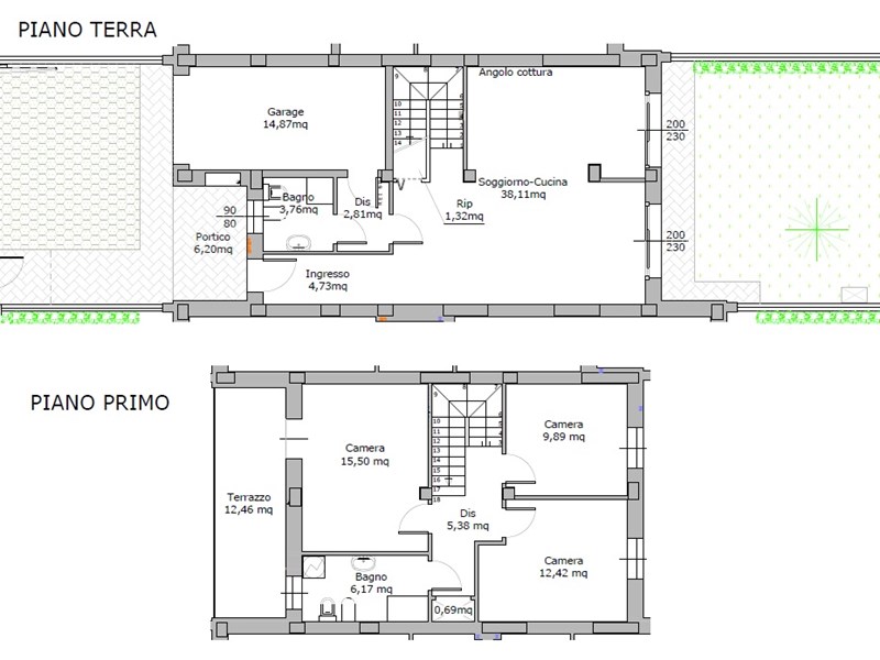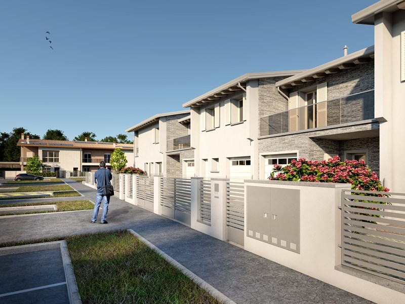 Villetta di prossima realizzazione con al P.T. giardino fronte/retro, portico, ingresso, ampia zona giorno con cucina open space, bagno e garage, al P.1° tre comode camere, bagno, ripostiglio e terrazzo.