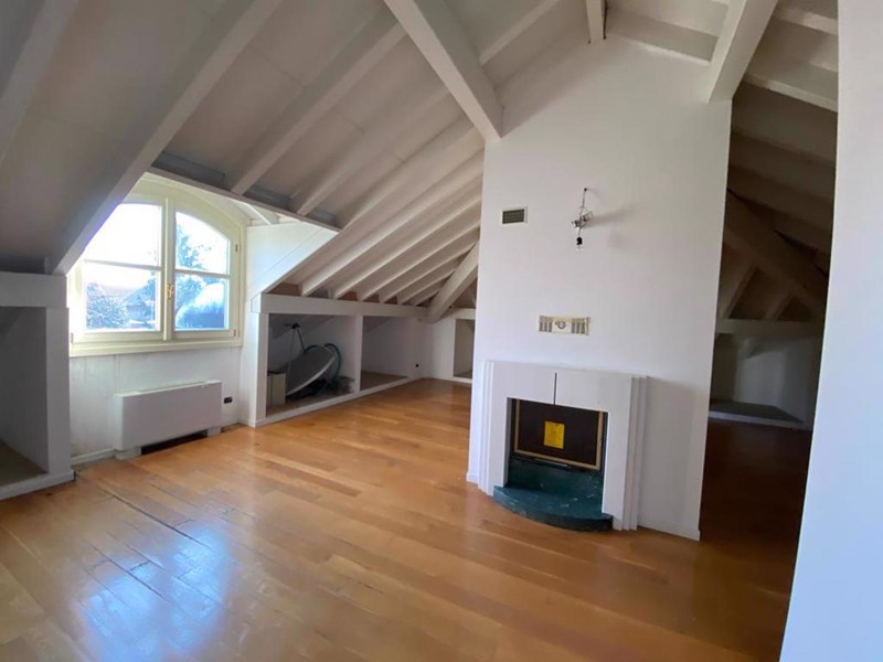 A different area of the attic, also with large exposed beams, is unfinished and to be completed according to the tastes and needs of the buyer.
