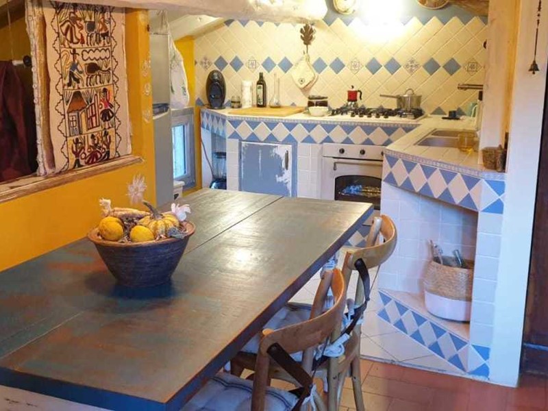 2p: soggiorno con cucina a vista in muratura, 2 camere matrimoniali, bagno con vasca, bagno con doccia.Giardino 150 mq. recintato