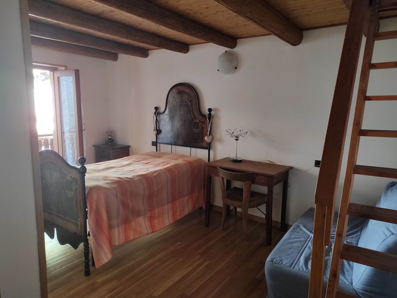 Vendesi caratteristico ampio appartamento su due piani composto da cucina abitabile, soggiorno con particolare stufa in maiolica (foto), cantinetta a volta, scala in legno piano superiore, 2 camere matrimoniali, bagno e soppalco con altra camera. Balconcino. Ingresso indipendente. Pavimenti in legno, travi tetto legno a vista. Termoautonomo. Arredato. Box singolo. €. 115.000