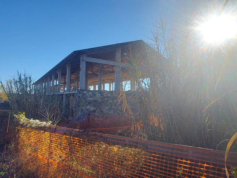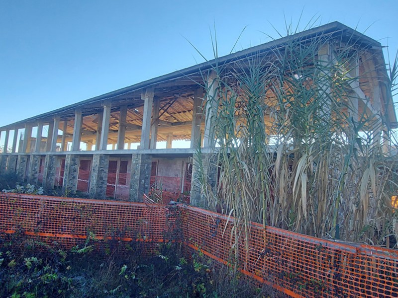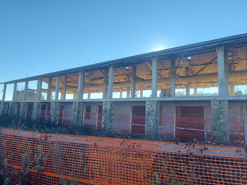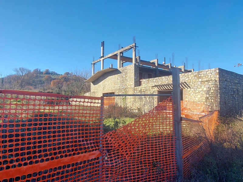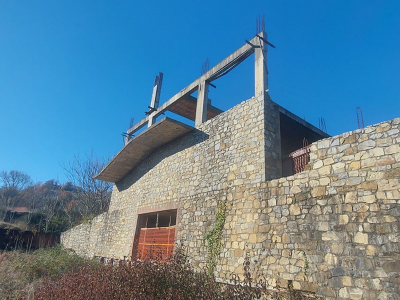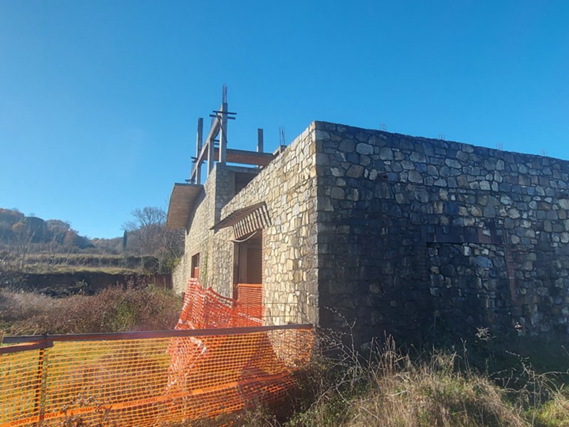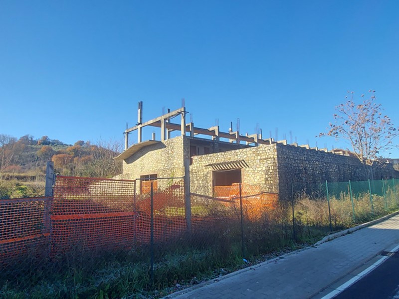 porzione. L'edificio si presenta in corso di costruzione, con facciata rifinita in pietra
