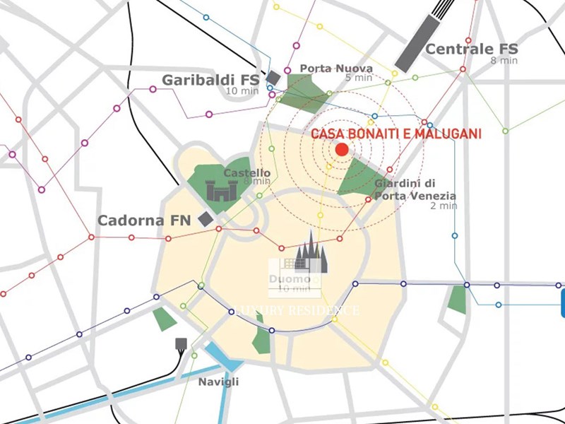 La posizione strategica della casa, permette di raggiungere in pochi minuti metropolitana, stazione centrale, i giardini di Porta Venezia, Porta Nuova District, il Duomo.......