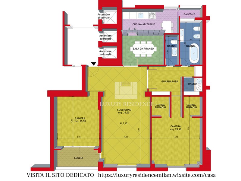Composto da ampio Salone di 35 mq, cucina abitabile, sala da pranzo, due camere di oltre 15 mq, cabine armadio, guardaroba/disimpegno, BAGNI nuovi, LAVANDERIA, ampia loggia e balcone. Cantina di pertinenza.