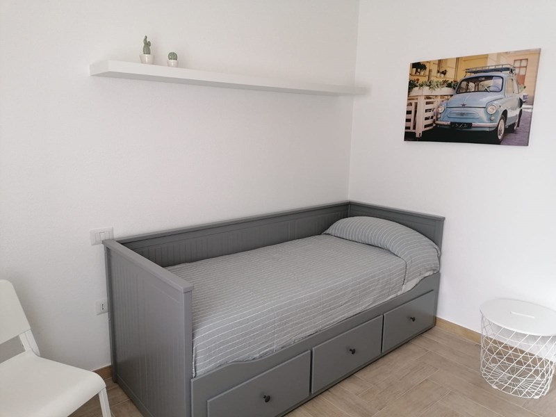 Accogliente appartamento, di recente costruzione, al secondo piano in un piccolo condominio di sei unità abitative. L'ingresso con portone blindato introduce nel soggiorno collegato ad un terrazzo con vista, cucina anche essa con terrazzo sul retro del condominio, mentre un piccolo andito permette di raggiungere una camera matrimoniale, una cameretta e un bagno La soluzione si completa e si arricchisce di una comoda cantina.