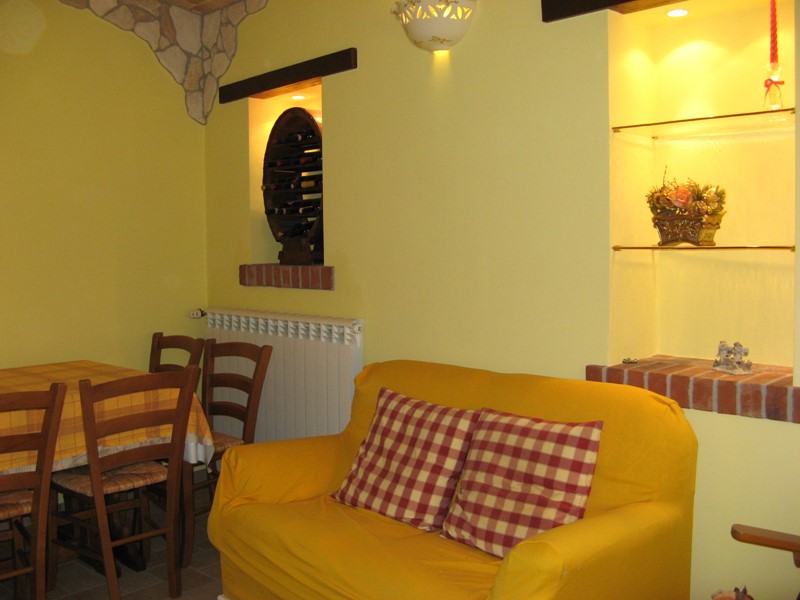La casa è stata totalmente ristrutturata nel 2013/2014 , è gradevolmente arredata in stile rustico con utilizzo di materiali di pregio, ha tutte le utenze allacciate e può essere immediatamente utilizzata. I due livelli sono collegati da scala interna o scala esterna con una pregevole ringhiera in acciaio e un piccolo terrazzino. Entrando al piano terra tramite un portoncino blindato ci si trova subito nella bella cucina abitabile totalmente attrezzata e che presenta anche un gradevole camino angolare. Segue un soggiorno con nicchie alle pareti e la comoda scala in legno che conduce al piano superiore direttamente nella camera da letto principale. Proseguendo si incontra una cameretta e quindi il bagno con doccia. Una ulteriore porta blindata, come secondo ingresso, permette di uscire sul terrazzino dove termina la scala esterna e da cui si gode un bel panorama sulle colline circostanti.
