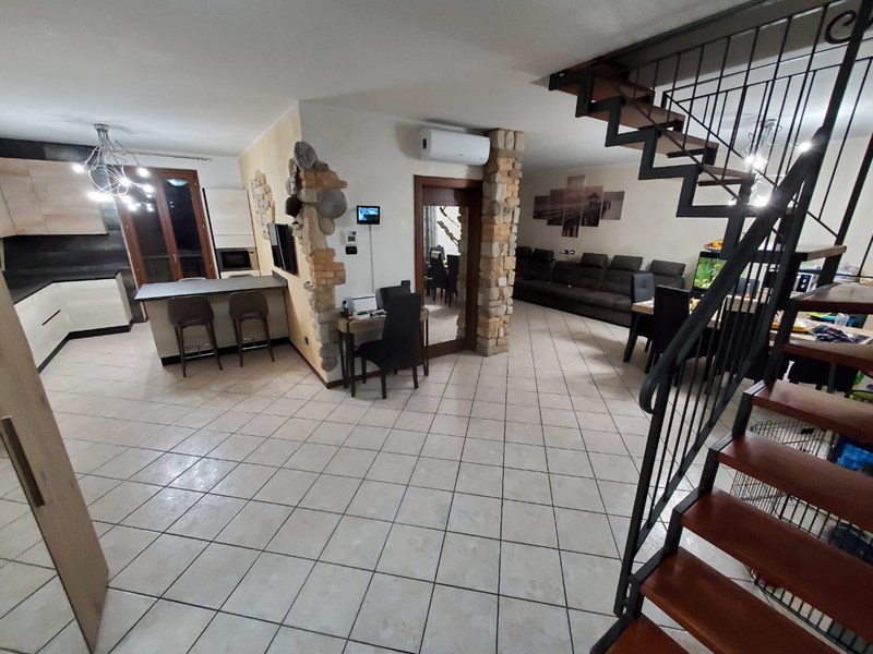 Al piano primo open space cucina e soggiorno con bagno di circa 8 mq; pareti con inserti di sasso a vista. Terrazzo da 2,5x8 mt su un lato e altro terrazzo da 1,5x9 mt dall'altro.