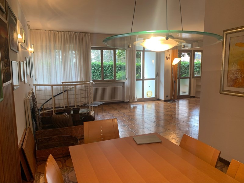 Prestigioso ed ampio Appartamento al Piano Terra con Giardino e Taverna in zona Tranquilla (Strada privata) Privato vende, composto da: Atrio, Soggiorno, Pranzo, Cucina, 3 Camere, 2 Servizi, Taverna con caminetto, Cantina, Ampio Garage, 2 grandi Verande di cui una con lavanderia, Termoautonomo con impianto recentemente rinnovato.