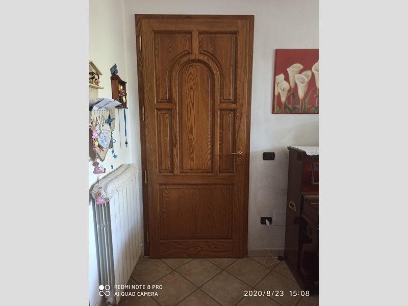 L’appartamento è così composto: Grande sala, grande cucina, disimpegno, due camere, due bagni, terrazzo con tettoia. Finestre artigianali di Castagno lamellare, doppi vetri e guarnizioni.