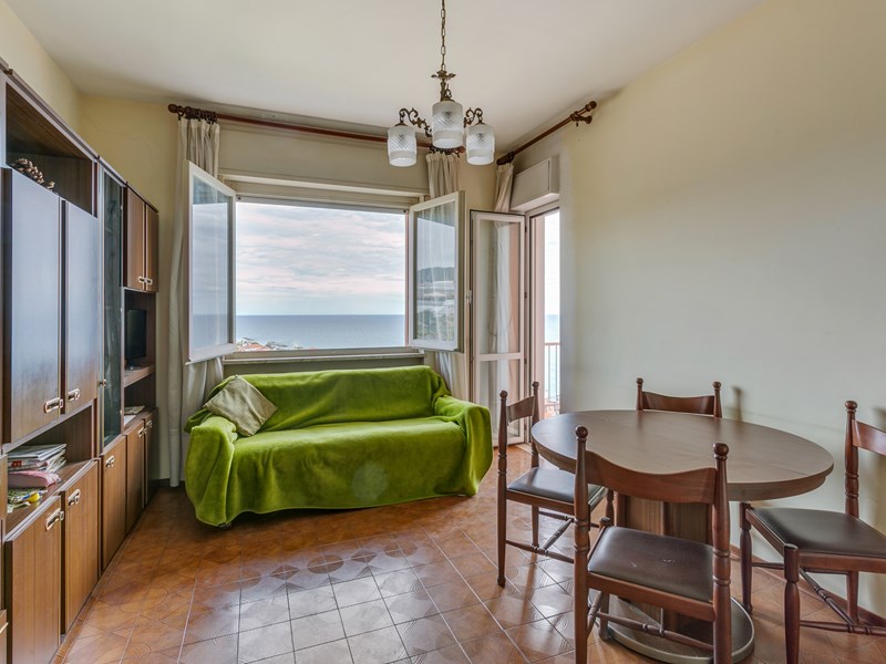 Ampio e luminoso appartamento con grandi vetrate VISTA A MARE e un balcone doppio molto profondo.