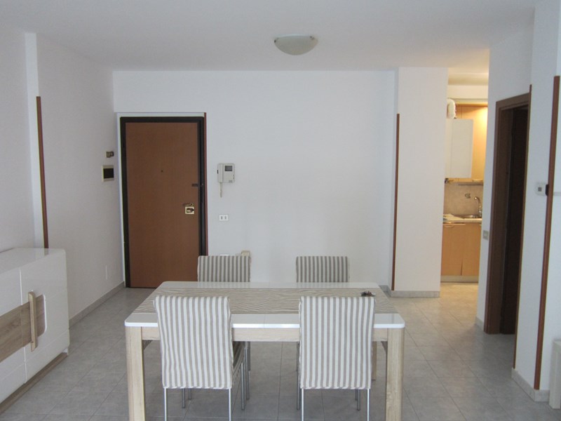 Appartamento di tre locali e servizi composto da ingresso soggiorno doppio, cucina, disimpegno, camera matrimoniale, 2° camera (o studio) bagno, terrazzo coperto (di circa 30 mq) completamente arredato. Completano l’appartamento il box auto chiuso (al piano interrato), cantina posto auto condominiale all’esterno.