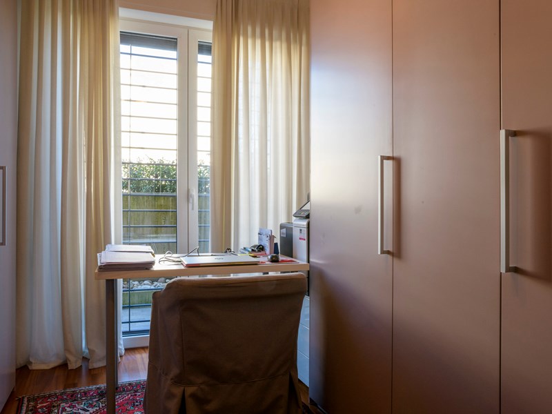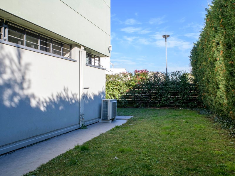 Q.re Reno: in fabbricato di sette unità del 2012 proponiamo appartamento di 100 mq con giardino privato di 190 mq composto da: sala, cucina non abitabile, due camere da letto, doppi servizi dei quali uno in una delle camere, cantina ciclabile ed ampio garage singolo. Riscaldamento a pavimento centralizzato con contacalorie. Aria condizionata, videocitofono, allarme volumetrico e perimetrale, zanzariere e tapparelle elettriche. Area condominiale coperta per parcheggio moto e biciclette. Libero a Maggio 2023.