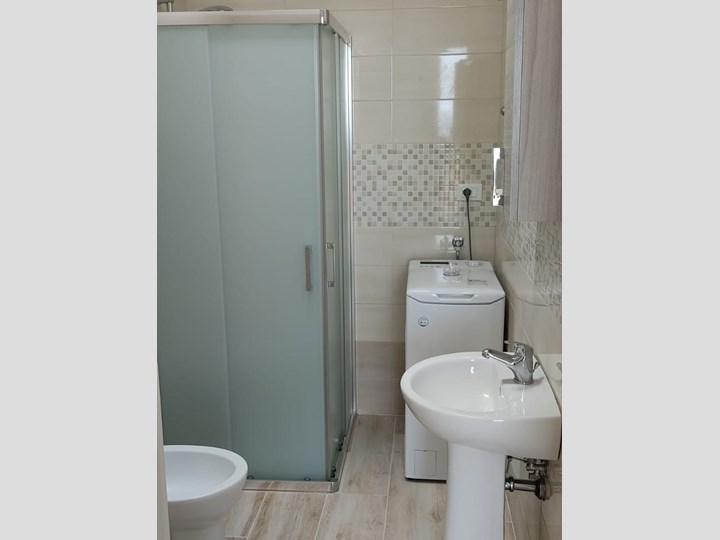 Completa la casa la seconda camera con letto soppalcato singolo, altro letto singolo con ulteriore letto estraibile in caso di necessità. Il secondo bagno è anch'esso finestrato e completo di box doccia, servizi wc e lavatrice slim da 7 kg. L'appartamento è destinato per max 6 persone, ma dietro accordo col proprietario, vi sarebbe anche il posto per una settima persona.