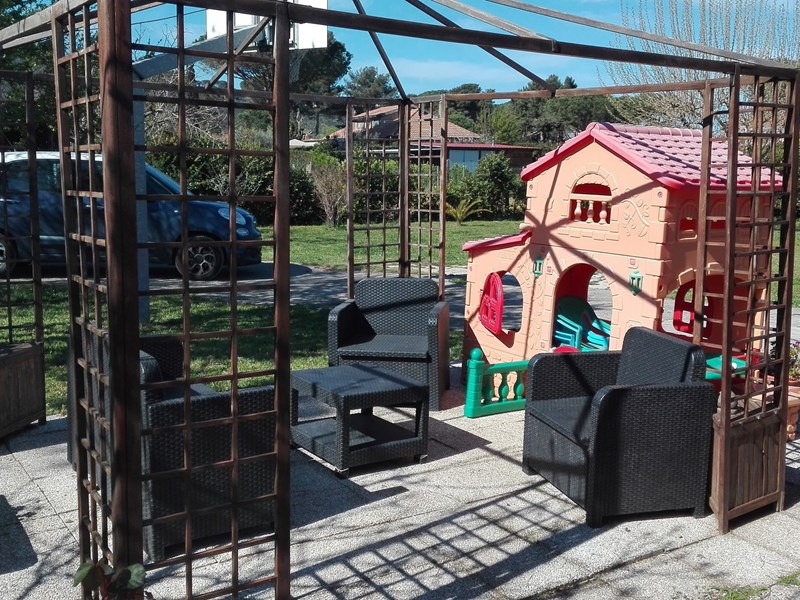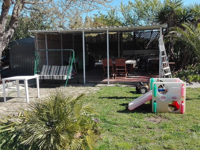 Villino monofamiliare con ampi e ben attrezzato giardino, composto di ingresso salotto con zona cottura completo di lavastoviglie, una camera matrimoniale + letto singolo, bagno con box doccia.