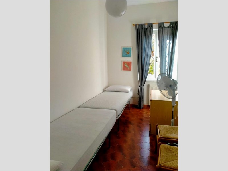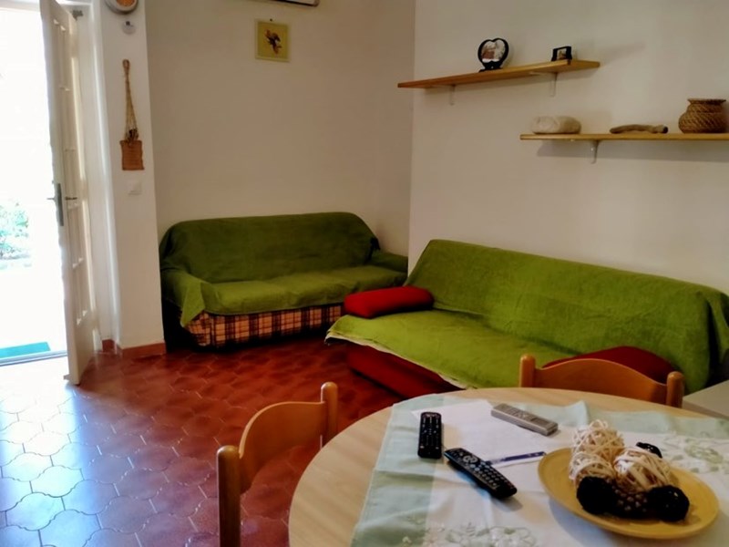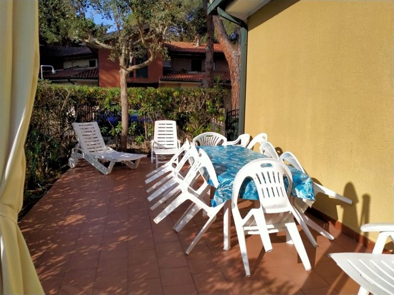 A circa 100 mt dalla spiaggia, al piano terra con doppio spazio esterno, appartamento composto di ingresso salotto con divano letto matrimoniale, cucina con accesso al giardino, due camere da letto matrimoniali, una camera con due letti, due bagni uno con vasca/doccia, uno di servizio con doccia e lavatrice.
