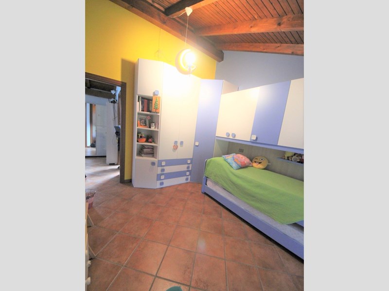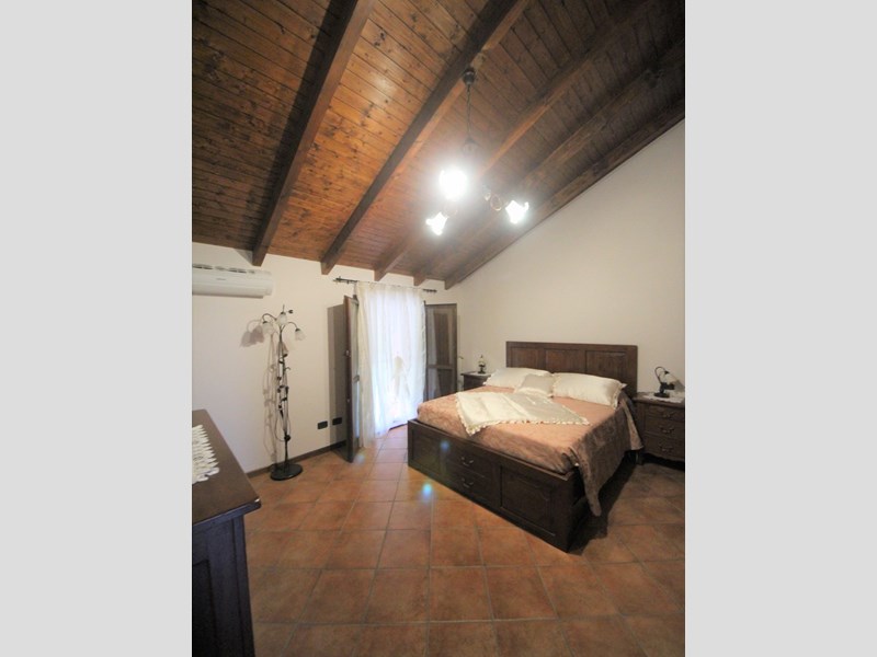 Il soffitto ha le travi a vista in legno, i serramenti sono in legno con doppio vetro; la pavimentazione è gres porcellanato.