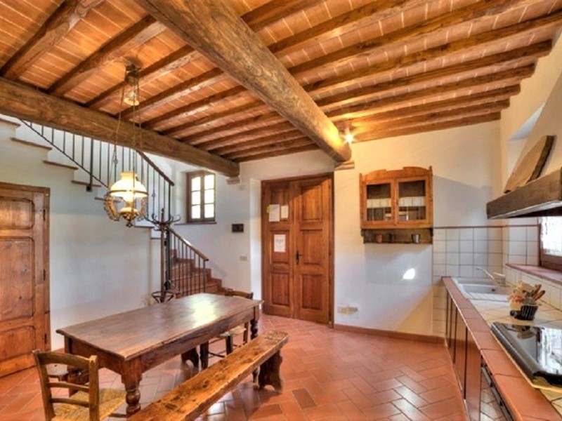 Unità abitativa interamente in pietra recuperata in perfetto stile toscano e composta da due appartamenti comunicanti per una superficie totale di 184 mq. calpestabili oltre a locali uso garage e cantina posti al piano seminterrato di 115 mq. I due appartamenti hanno ingresso indipendente e sono composti da: il primo, sviluppato tutto al piano terra, da soggiorno-cucina, camera, studio e bagno; l’altro da cucina-soggiorno al piano terra e da 3 camere, ripostiglio e bagno al piano primo.