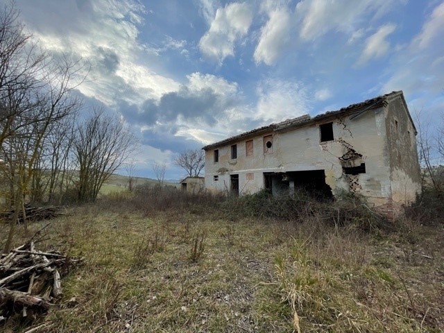 In Comune non lontano da Jesi ed in posizione riservata vendiamo soluzione singola da ristrutturare con 1000 mq di terreno circostante.