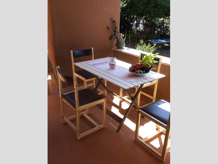 Piano terra con ampio spazio esterno, composto di ingresso salotto con due poltrone letto singolo, cucinotto, camera da letto matrimoniale, bagno con box doccia.