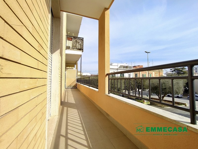 A Valenzano, in zona centralissima e servita, proponiamo in vendita delizioso trivani.\nL'immobile copre una superficie di 90 mq. ca e si compone di ingresso su soggiorno pranzo a vista con angolo cottura, bagno di servizio, disimpegno che conduce alla zona notte ove si trovano la camera matrimoniale, la cameretta, e l'altro servizio. Questa soluzione è ubicata al primo piano in stabile con ascensore e si presenta in buonissimo stato. La porta d'ingresso è blindata, gli infissi sono in vetrocamera, il pavimento è in laminato parquet e la caldaia è stata cambiata da poco.L'appartamento è molto luminoso ed è circondato sui tre lati da un ampio balcone di 40 mq.ca, \nCompleta il tutto il posto auto coperto e cantinola. Libero subito!! and euro; 155.000\n - Maggiori Dettagli: Cancello elettrico, Infissi in vetrocamera, Pavimento in parquet