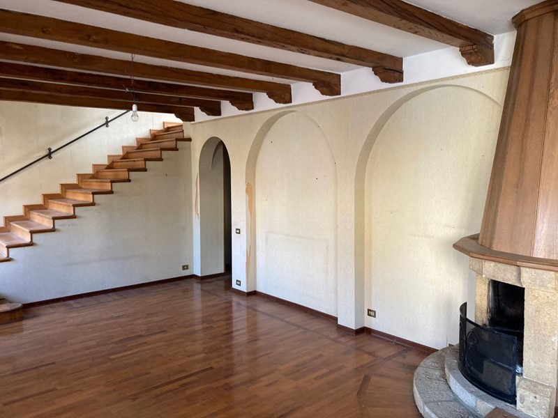 CODICE ANNUNCIO CA067 - Immerso nel fascino del borgo, a pochi passi dalla piazza del municipio, SPLENDIDO APPARTAMENTO con comodo GARAGE DOPPIO, disposto su due livelli e comp. da: ingresso, bellissimo salone con camino e travi a vista, cucina ab., 2 balconi, 2 camere da letto, rip. e bagno, una scala di collegamento dal salone porta ad una zona sovrastante suddivisa in 2 ambienti con balcone che è possibile adibire a zona letto con bagno o salotto. Al P.T. garage doppio e cantina. Risc. aut., parzialmente da ristrutturare. Unico!!