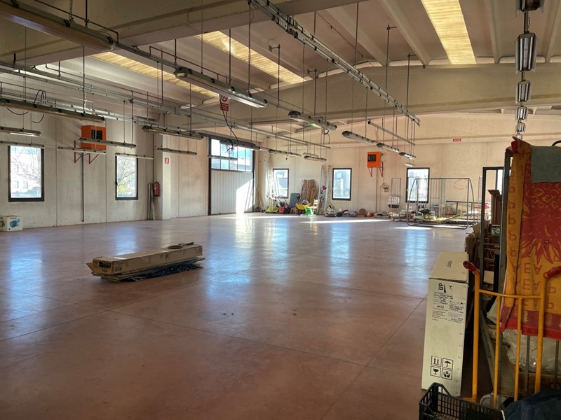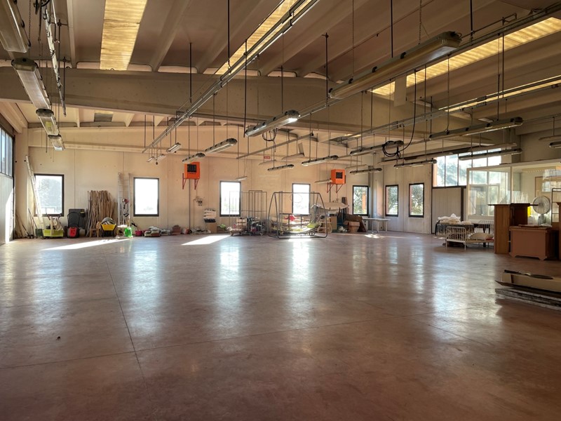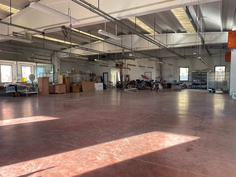 L'area destinata al capannone è composta a piano terra da un locale unico di 550 mq con altezza massima di circa 4,20 mt con doppio portone d'accesso, doppi servizi, ripostiglio e predisposizione per montacarichi;