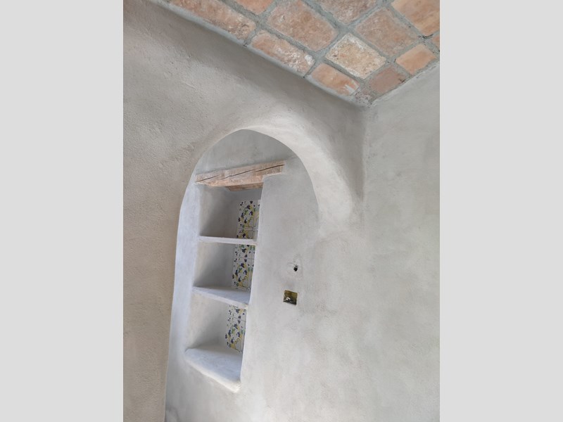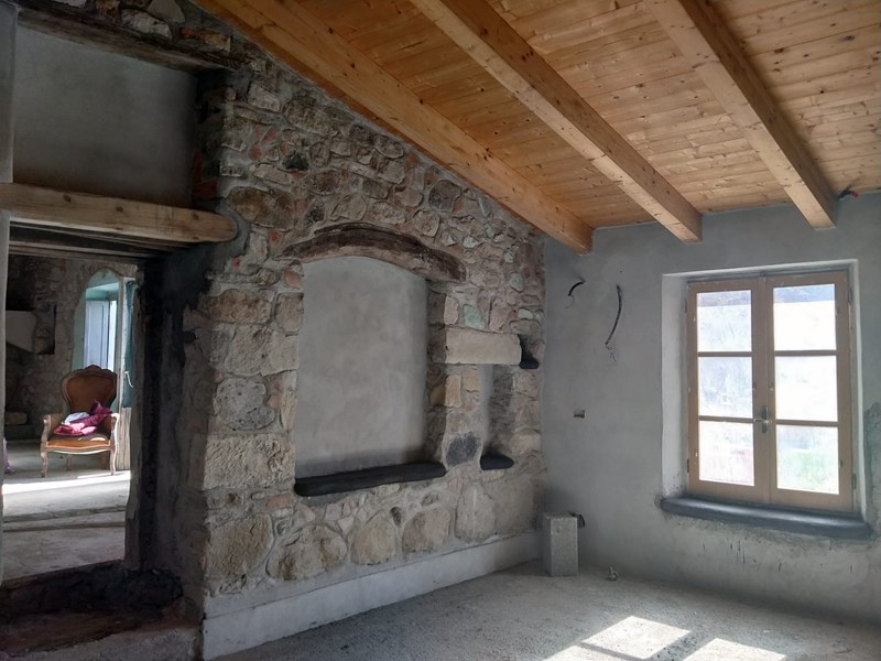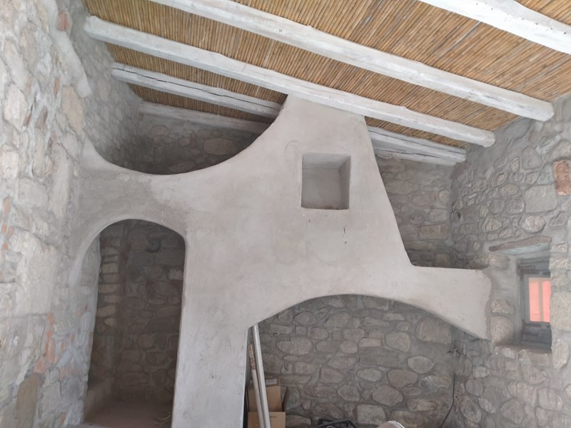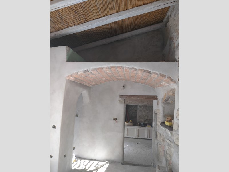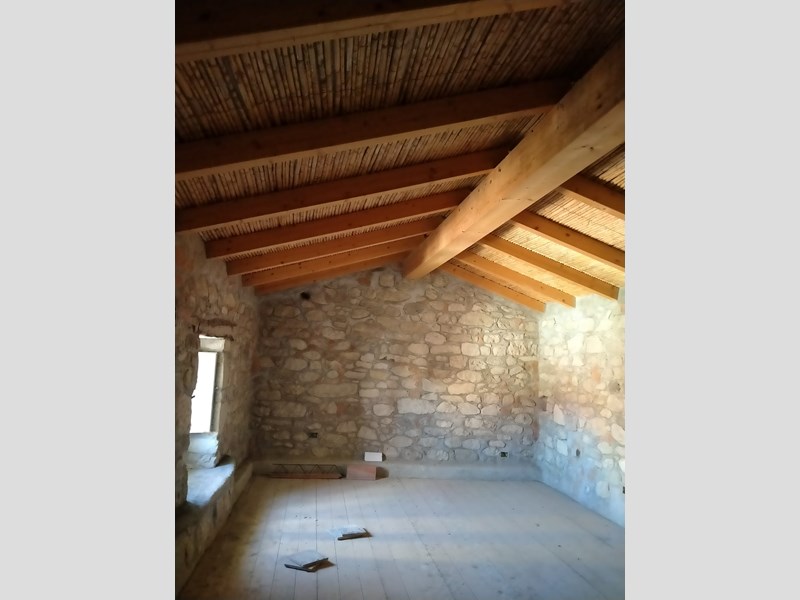 Tetto completamente nuovo in legno e canne con tegole anticate su tutta la superficie coperta, muri interni in ladini misto pietra, architravi in legno, nicchie, camini, bagni con ampie zone doccia etc..etc.. pavimentazione in esecuzione con cementine originali del 1920 e gres porcellanato I°scelta.