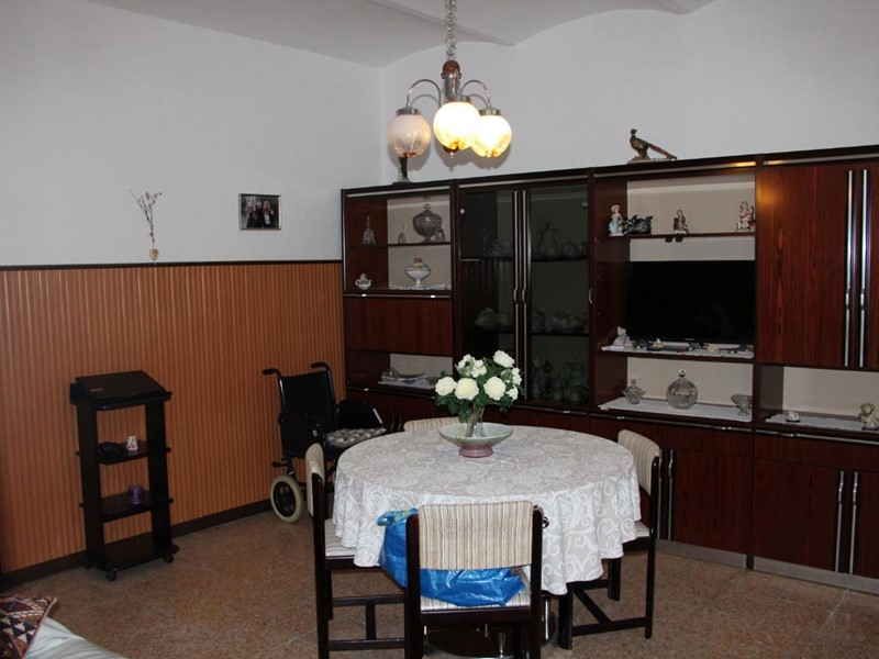 al piano terra una cucina abitabile, soggiorno, due camere, un bagno e un ripostiglio. Locali magazzino.