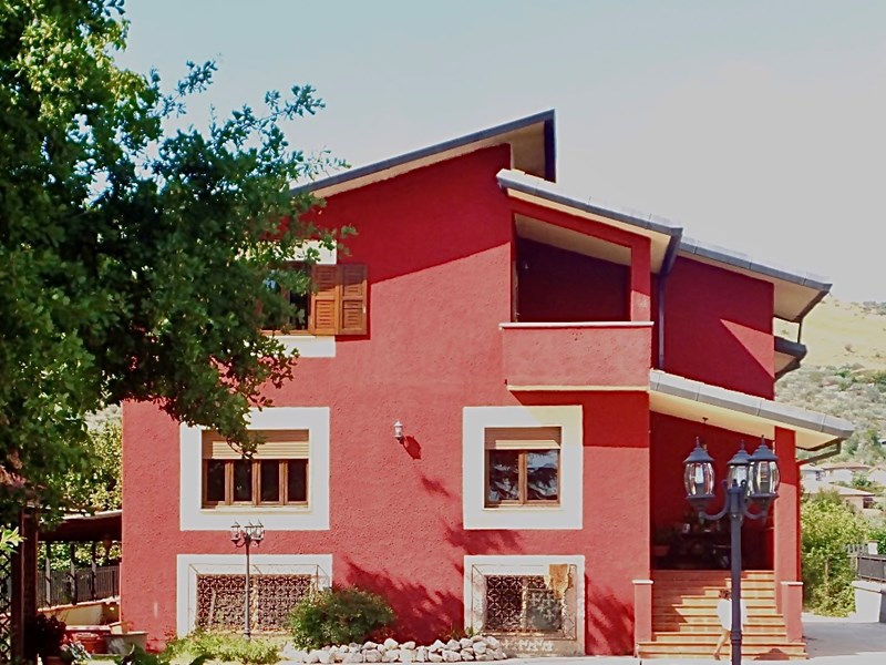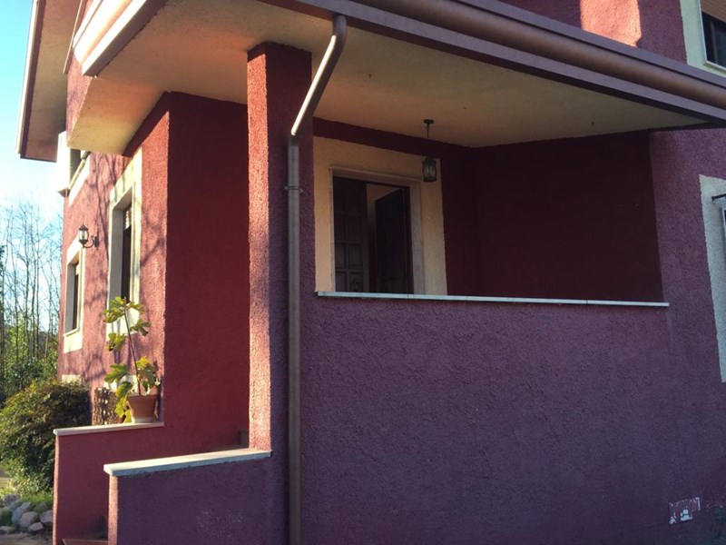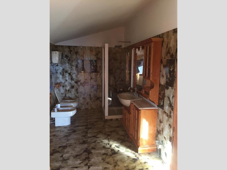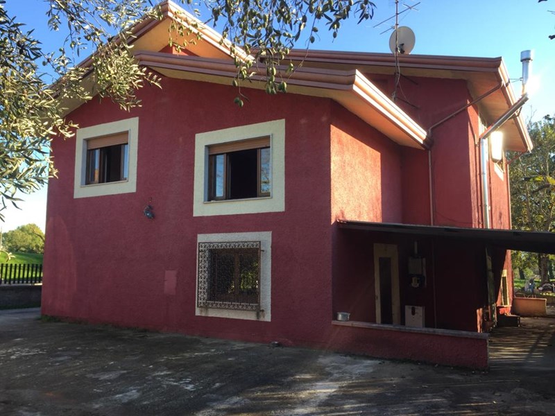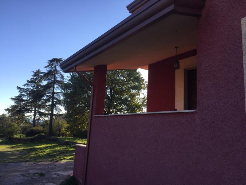 Villa su due piani (ad esclusione del piano interrato), piano terra salone doppio, sala da pranzo, camera di servizio,bagno e cucina abitabile con annesso patio di circa 30 mq, piano rialzato due camere matrimoniali ed un bagno, secondo piano camera/studio, camera padronale di 25 mq circa con bagno e balcone panoramico con affaccio su due lati. Piccolo magazzino adiacente alla cucina di circa 40 mq, possibilità sala hobby, Locale caldaia con pellet, pannelli solari. 7000 mq circa di terreno con annesso locale magazzino in costruzione di circa 120 mq . Condizioni dell'immobile discrete con qualche lavoro di ristrutturazione necessario.