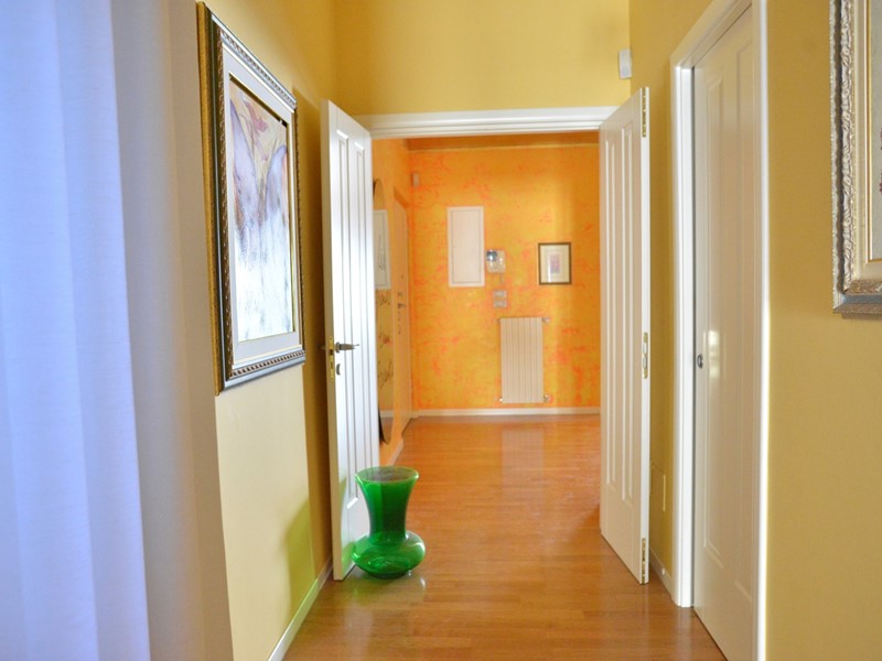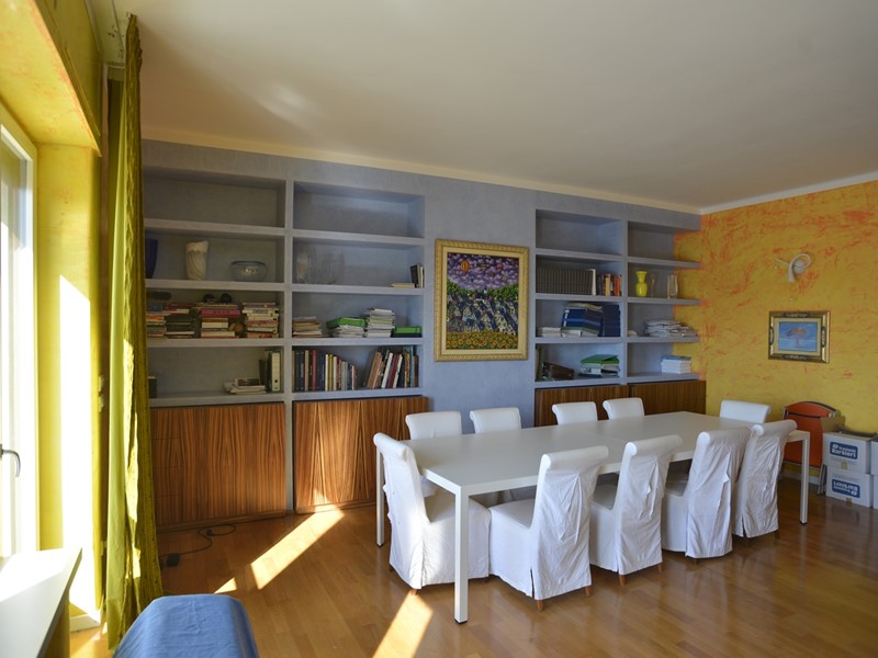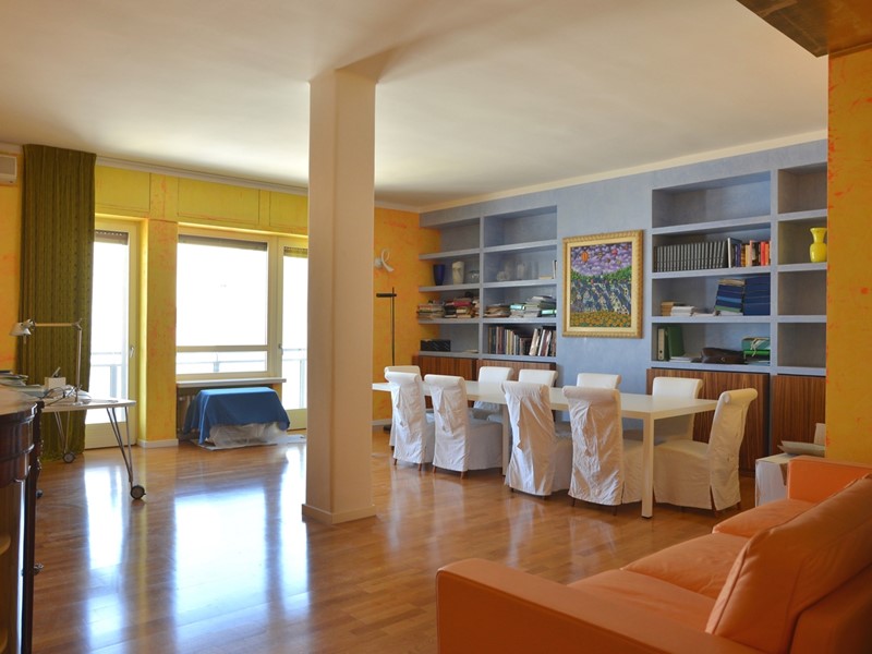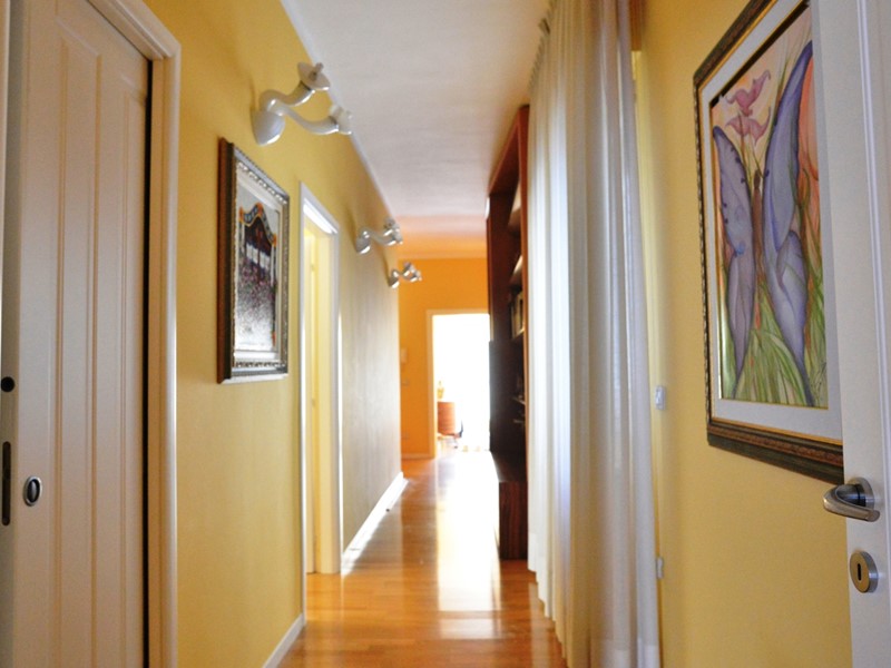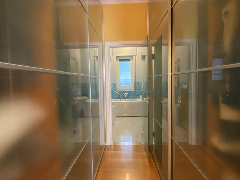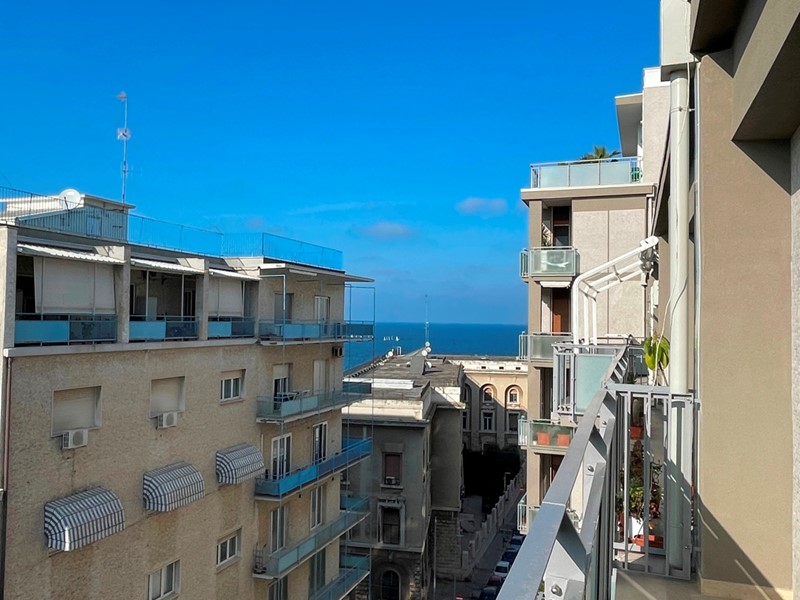 Il grande appartamento, di mq. 215 ca., ha vista mare, è posto a piano alto, è luminoso e ben rifinito. Lo spazio è organizzato in maniera funzionale. L'elegante ed ampio ingresso divide armonicamente la zona giorno dalla zona notte. La zona giorno ha il salone doppio con due balconi: affacciandoci e girando il nostro viso, siamo rapiti dall'azzurro del mare; il soggiorno pranzo, affacciato su un comodo balcone interno, è annesso alla cucina, completamente arredata e alla funzionale lavanderia. La zona notte è ampia e ben disimpegnata: la camera padronale ha una bella cabina armadio passante che ci introduce nel bagno riservato ed è affacciata su un interno arioso e silenzioso; altre due comode e tranquille camere con affaccio interno; un bagno con vasca e finestra. Completano le comodità dell'appartamento lo studio, posto in prossimità dell'ingresso e i comodi ripostigli. L'immobile è stato ristrutturato con attenzione e eleganza. I materiali sono di pregio: il pavimento è in parquet; le porte ed i numerosi arredi fissi sono di alta ebanisteria. L'appartamento è climatizzato, ha la porta blindata, ed è dotato di impianto di allarme.