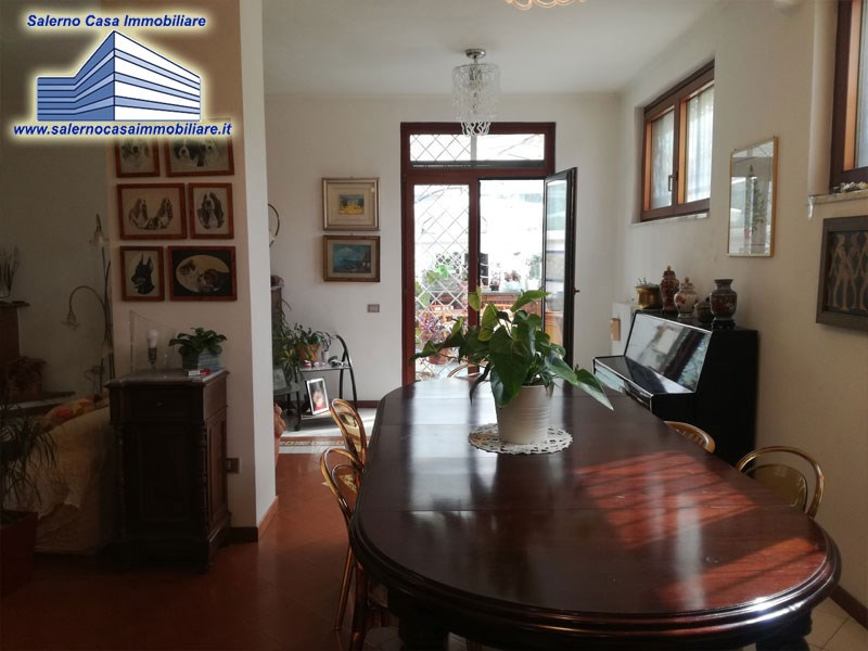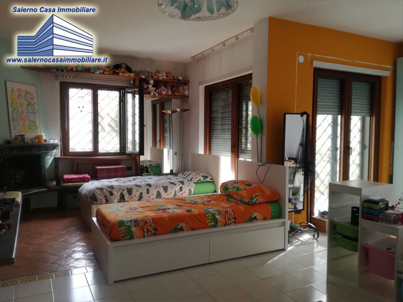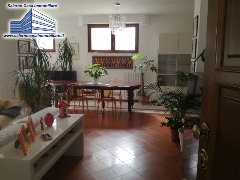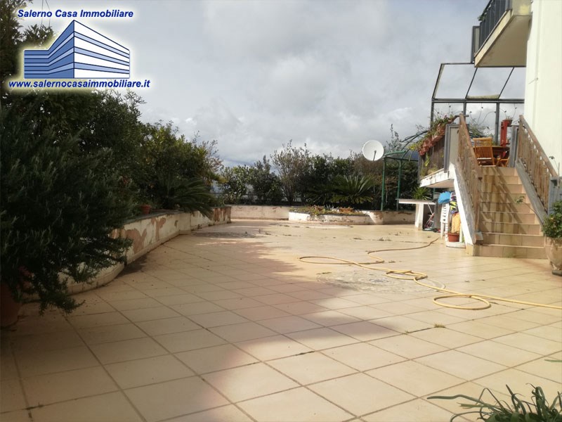 Salerno - Casa manzo, in piccolo condominio costruzione fine anni 90, luminoso appartamento su due livelli per complessivi mq. 330 (piano interrato + piano terra + primo piano) oltre terrazzi per mq. 200, cortili ed aree verdi per mq. 300, un garage doppio di mq. 30 e la comproprietà del 50% su locale comune di mq. 66. Ascensore interno di uso esclusivo.