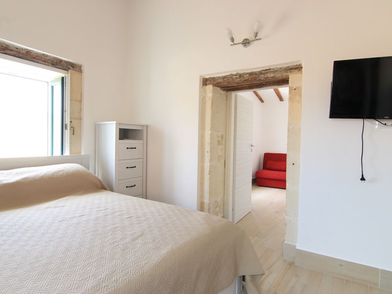 Casaoggi.it propone in vendita a Siracusa Ortigia via Roma, in stabile d'epoca del XVIII secolo con caratteristica corte interna, appartamento al piano attico totalmente ristrutturato. Ingresso living con angolo cottura, due camere e bagno. Affacci con vista tetti e scorcio di vista mare. Rifiniture curate nei minimi dettagli con travi e pietra originale a vista, pavimenti in gres effetto parquet, infissi in legno con vetrocamera e sanitari di design. Arredi nuovi inclusi nella vendita. Immediatamente disponibile, ideale per casa vacanza. codice 90612