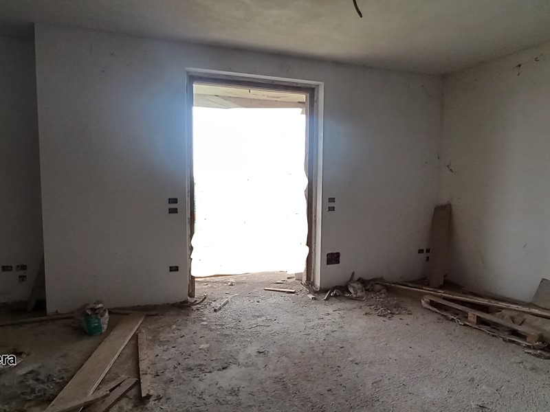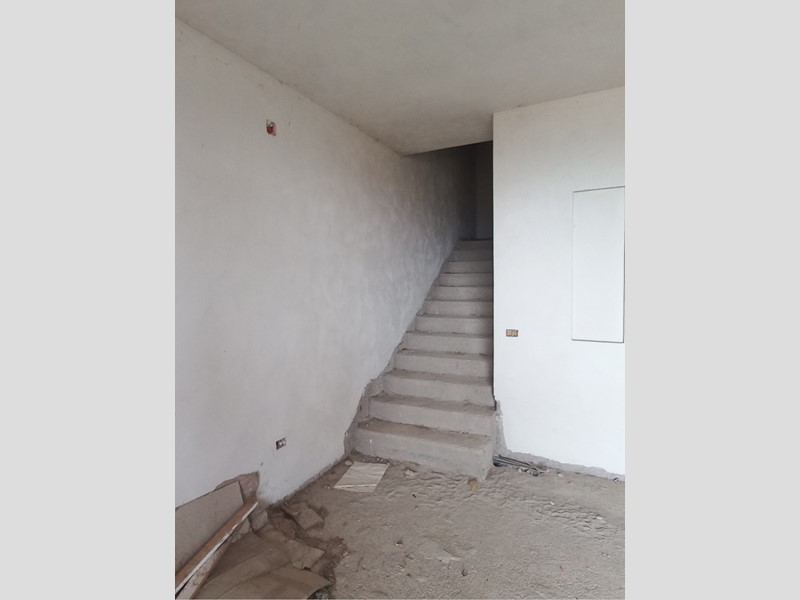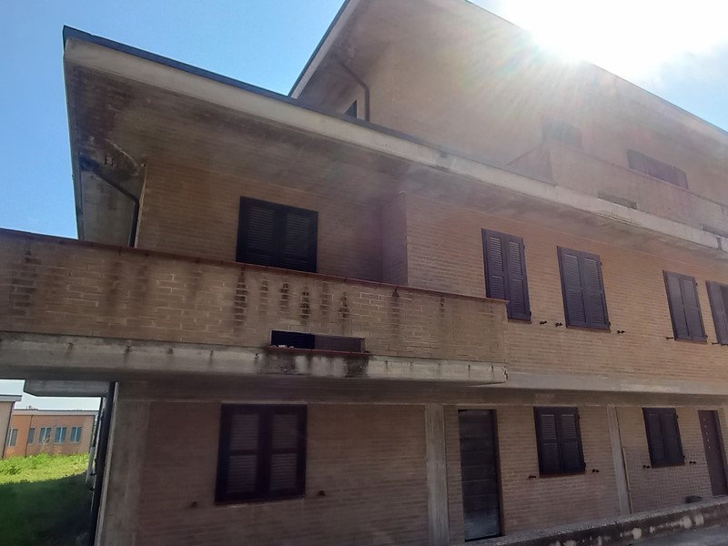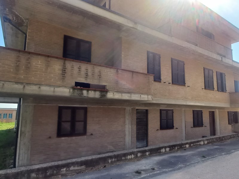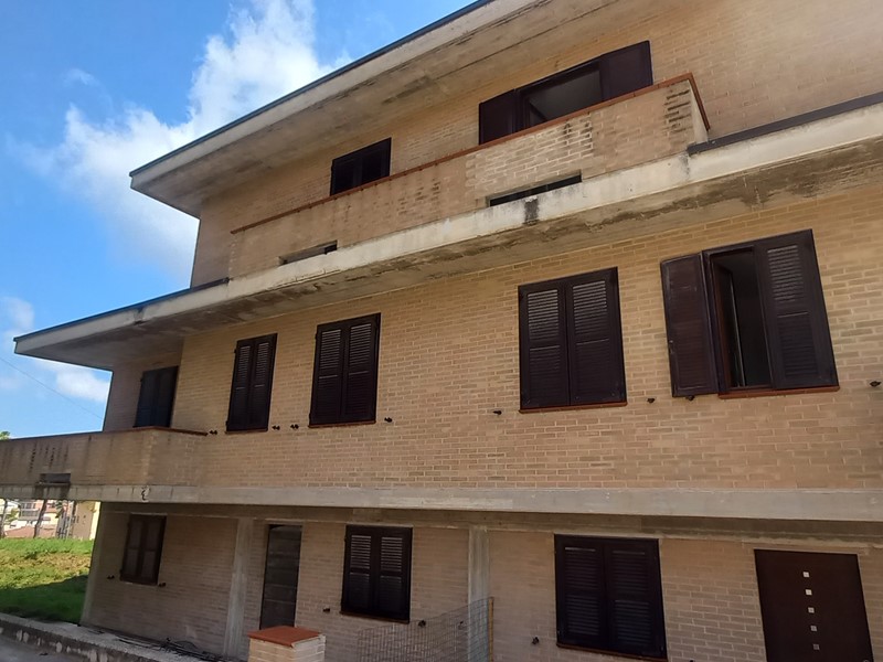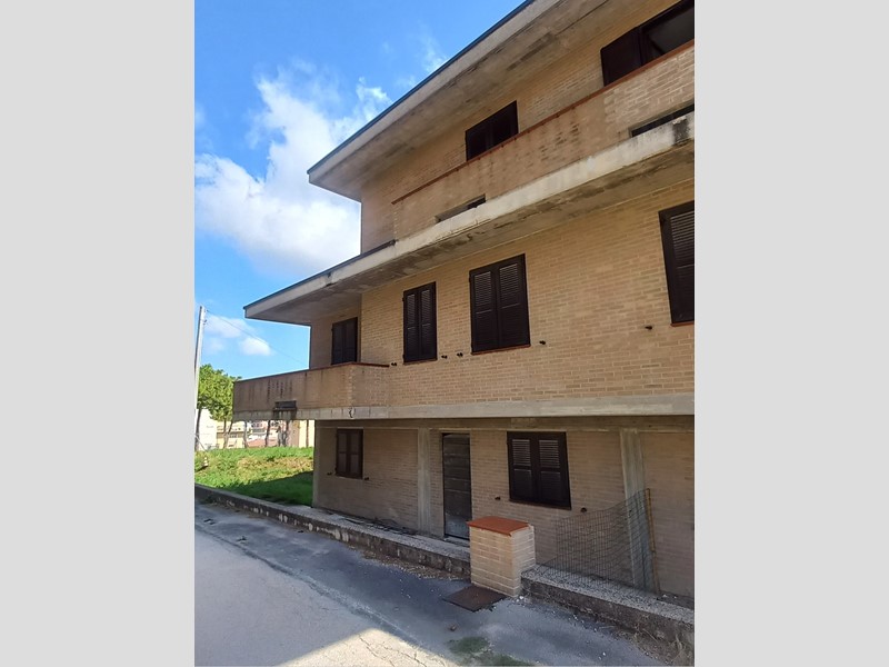 Monte San Pietrangeli. Quartiere residenziale. Porzione di villa bifamiliare. Soluzione libera su tre lati. Ingresso completamente indipendente. Immobile sviluppato su tre livelli con soffitta. Piano terra con accesso autonomo destinato a garage di circa 140 m², piano primo rialzato con ulteriore ingresso indipendente di circa 105 m² con terrazzo di ampia metratura assolato e due balconi, piano secondo di circa 60 m² con due balconi e soffitta. Abitazione terminata esternamente con mattoncini a faccia vista, interno interamente al grezzo da ultimare. Possibilità di ricavare due unità abitative separate per due nuclei familiari.