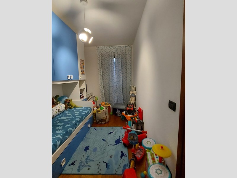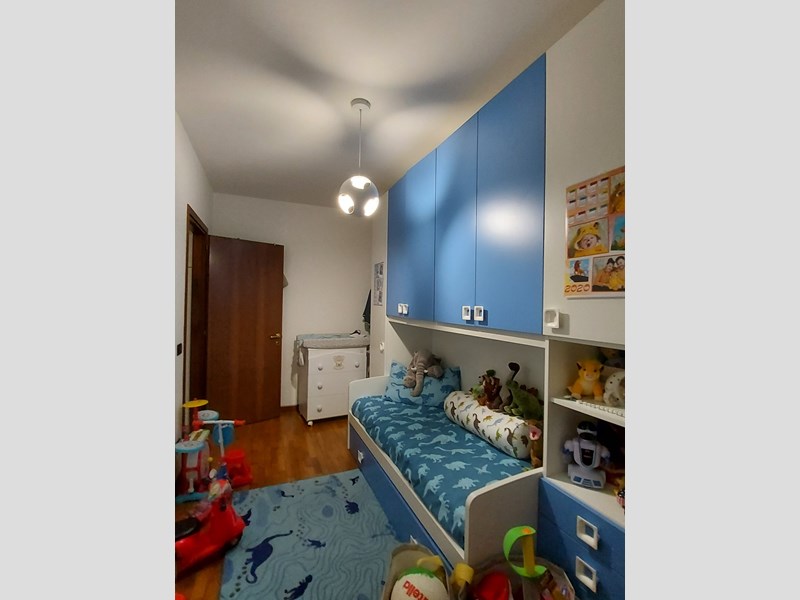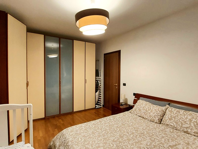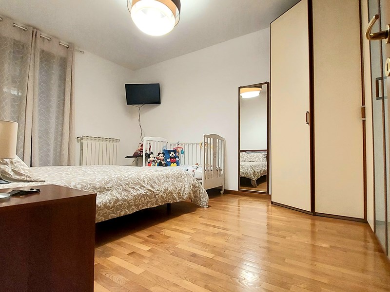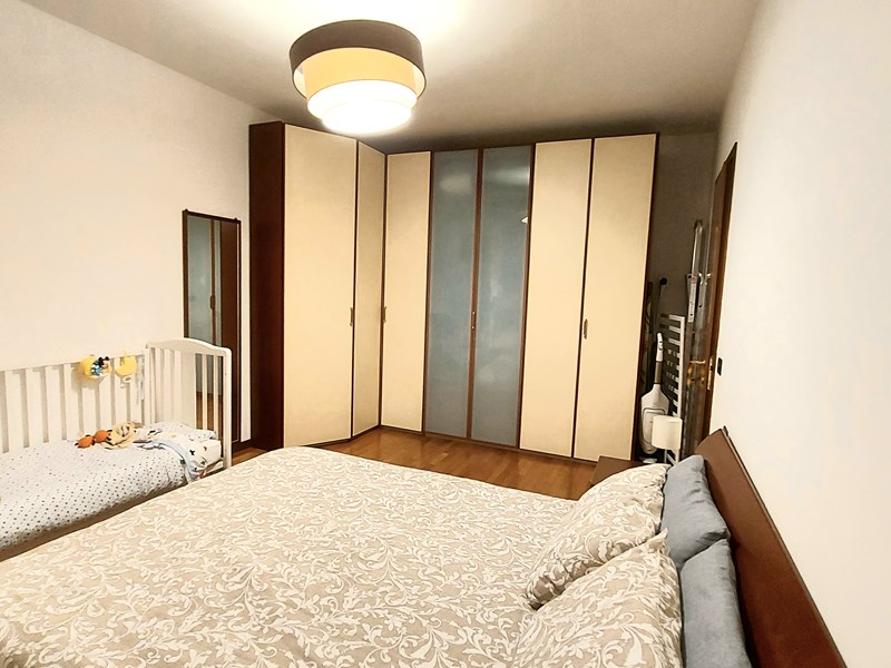 L'immobile, in stabile recente (2003) con ascensore e giardino condominiale, in ottime condizioni, è composto di luminoso ed ampio soggiorno con cucina e balcone (esposizione Ovest), camera matrimoniale, cameretta e bagno finestrato con vasca (esposizione Est), un ulteriore bagno con doccia, piccolo corridoio con armadio a muro. Completa l'unità un box (più che) doppio (28mq).