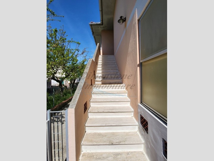 Posto al primo piano raggiungibile tramite scala esterna, questo bellissimo appartamento ha una superficie di circa 160 mq. Entrando ci accoglie un arioso disimpegno che serve la zona giorno, composta da ampio salone e cucina abitabile. Una lunga terrazza di circa 20 metri quadri ci permette di godere dell'ottima esposizione della casa.
