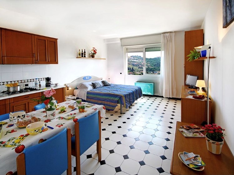 Tutti gli appartamenti presentano mobilio,cucina attrezzata, biancheria sanificata all’arrivo.