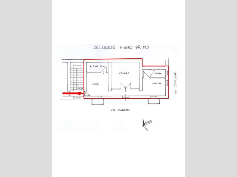 Alloggio indipendente al primo piano in stabile di due piani, composto da una sala, un'ampia camera, cucina abitabile, bagno e ripostiglio.