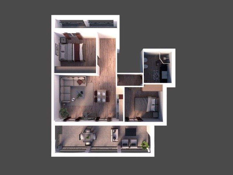 L'immobile è composto da ingresso, zona giorno con angolo cottura, due camere da letto, bagno e balcone e terrazzo. Riscaldamento Autonomo