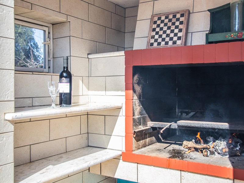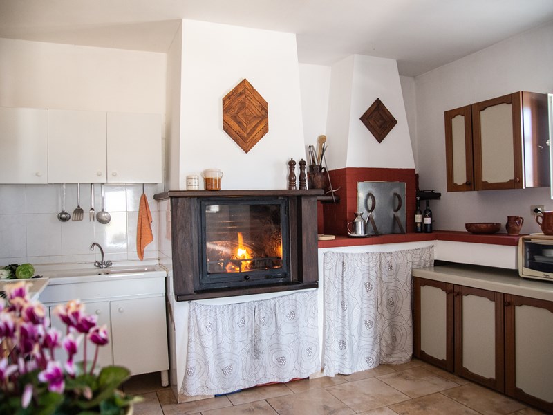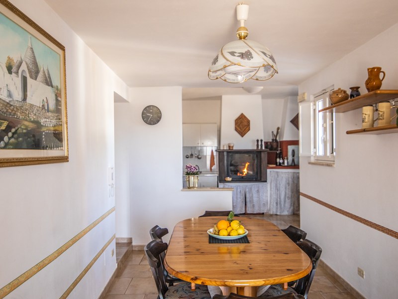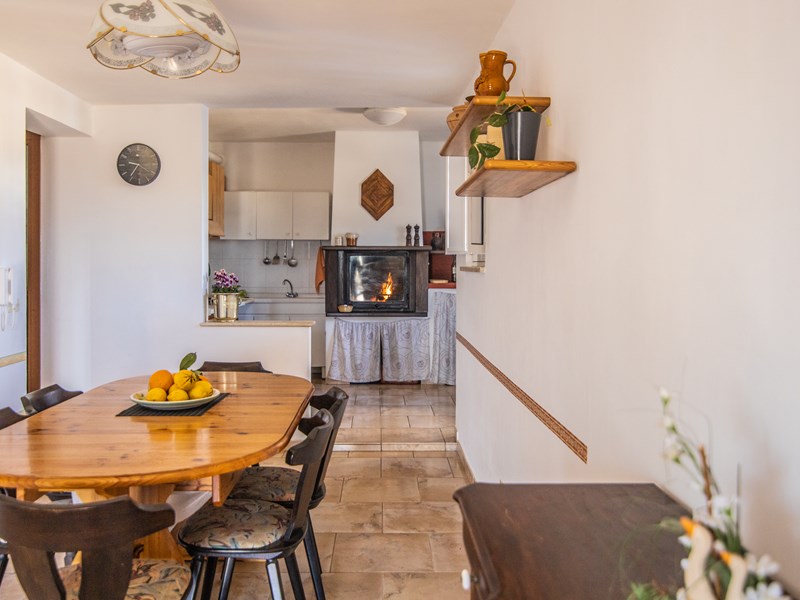 L’ingresso si affaccia direttamente nella sala da pranzo con cucina a vista abitabile, completa di camino, forno a legna, forno elettrico e a microonde, cucina, frigo, ecc. dalla sala da pranzo si accede alle stanze da letto.