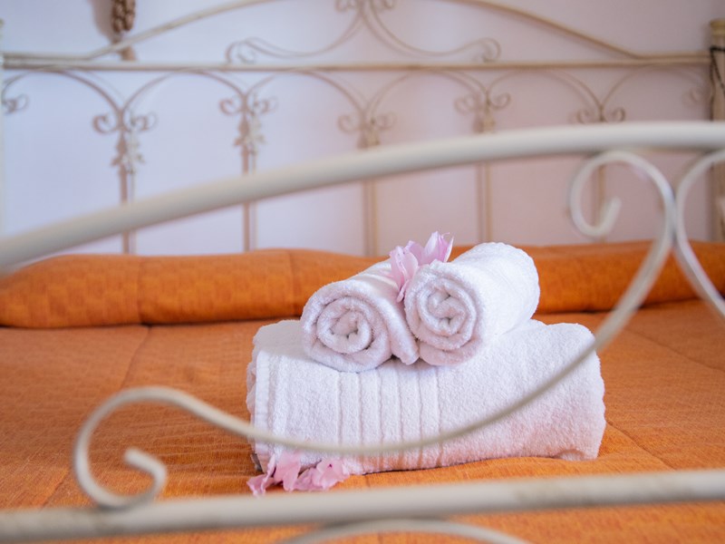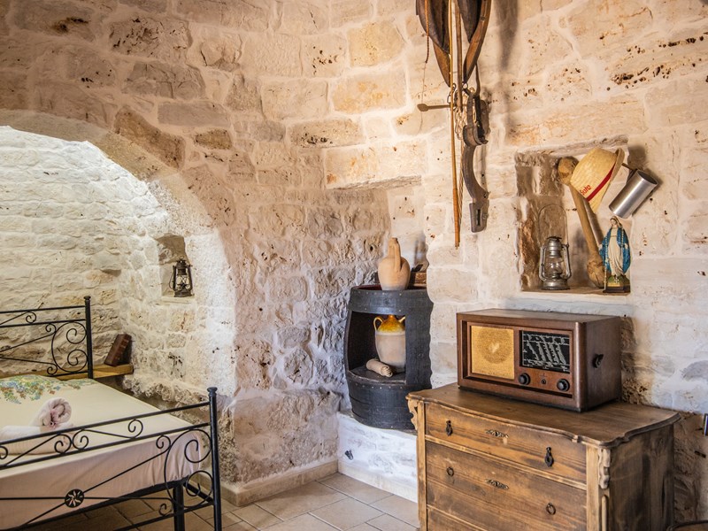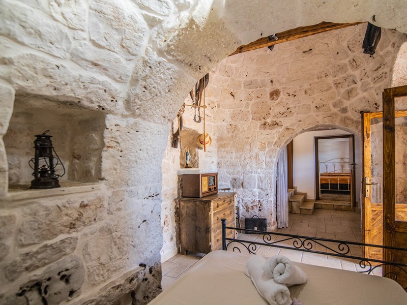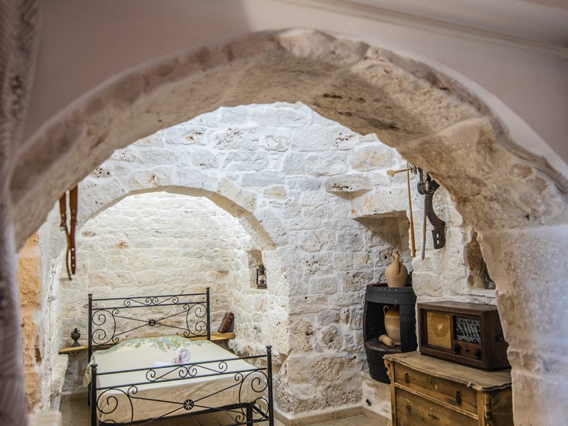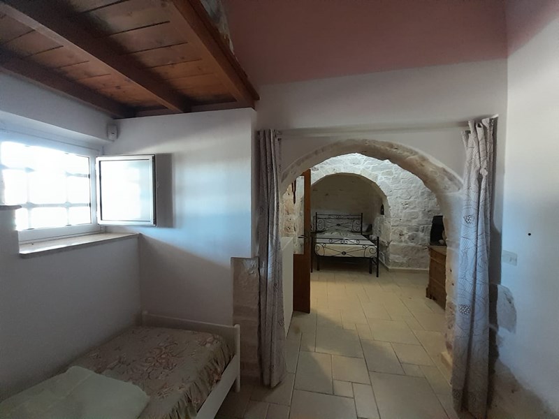 Dalla camera matrimoniale si accede ad un'altra alcova con posto letto singolo che a sua volta porta nel trullo.