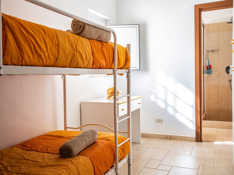 La prima è una camera matrimoniale, bagno con doccia, poi troviamo un’altra stanza con letto a castello con bagno e doccia.